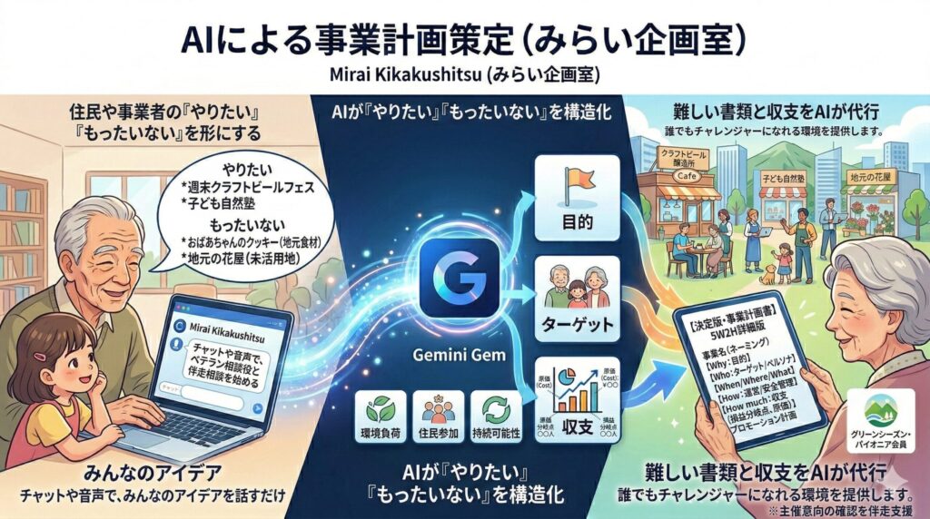 これまでは、「やりたい」という想いがあっても、「事業計画を作るのが難しい」「誰に相談すればいいか分からない」「予算がない」といった壁に阻まれ、多くのアイデアが消えてしまっていました。